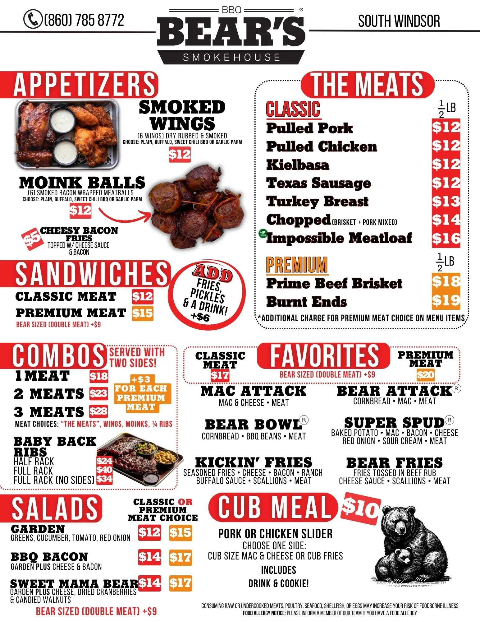 ABOUT Mission The Bear's Foundation careers Awards Follow Us! Locations & Menus all locations Asheville (Downtown Asheville) Asheville (@ SWEETEN CREEK BREWING) Hartford New Haven (LOCATED IN THE DISTRICT CAMPUS) South Windsor Windsor Storrs (LOCATED IN THE UCONN STUDENT UNION) ORDER NOW PICK UP delivery CATERING Events Events Connecticut North Carolina Shop Sauces & Rubs purchase gift cards Loyalty Catering Catering Holidays Food Trucks Donations